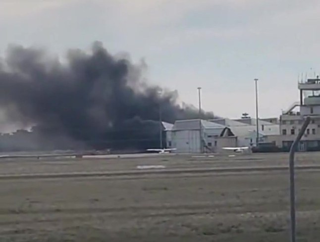 Plane crashes into airport hangar leaving two dead and a dozen injured