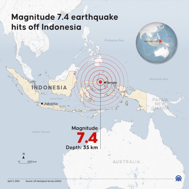 Tsunami warning triggered after powerful 7.4-magnitude earthquake strikes Indonesia