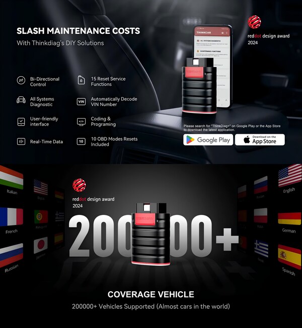 ONTARIO,Calif.,Aug. 28,2024 -- The Red Dot Design Award,a beacon of design excellence since 1955. In 2024,the glory of Red Dot Design Award shone uponTHINKCAR Tech Co.,Ltd. With its THINKDIAG car owner intelligent diagnostic device,THINKCAR Tech won this internationally recognized honor in the "Vehicle Accessories" category. This is not only an affirmation of THINKCAR Tech's design and R&D strength but also a wonderful display of innovative design power on the global stage.