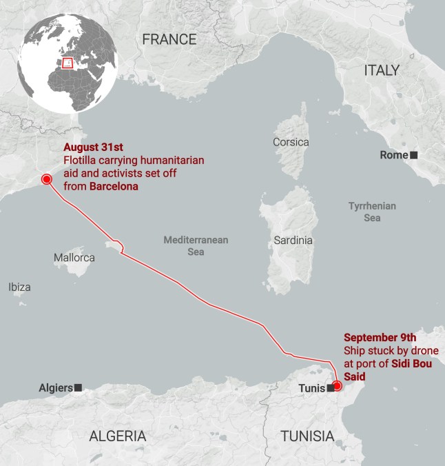 The Global Sumud Flotilla boat caught fire after an alleged drone attack
