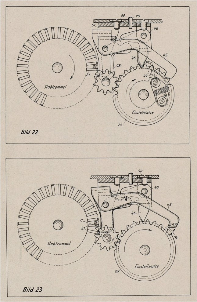 A second feature was a ‘negation’ function built into the sixth wheel. When activated,it reversed the state of pins on the other wheels,instantly changing the machine’s behaviour and increasing its unpredictability.