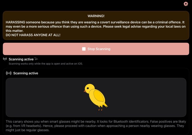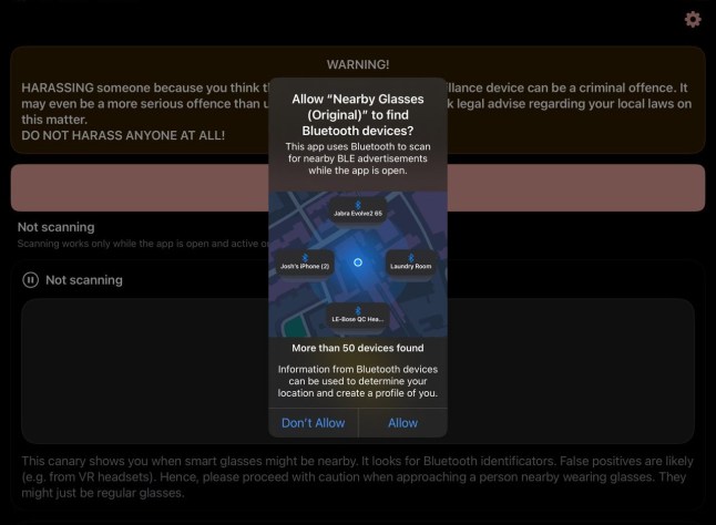 The Nearby Glasses app uses Bluetooth to detect smart glasses (Picture: Nearby Glasses)