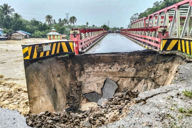 At least 10 people have died after torrential rain unleashed flash floods and triggered landslides on Indonesia’s Sumatra island.